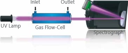 - The gas flow cell has two quartz windows to transmit the UV light throught the measured gas. The standard path length of the flow cell is 1200 mm.