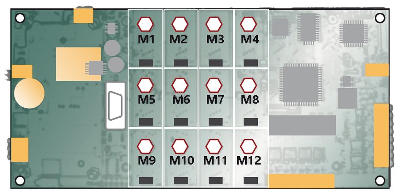 The EL300 main electronics board includes 12 sockets that can receive input or output modules.
