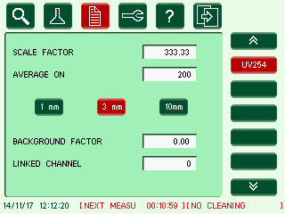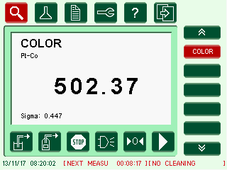 The colour touch screen and intuitive interface available in 8 different languages (Chinese, English, French, German, Italian, Portuguese, Spanish, Turkish) makes very easy to test or configure the analyser. Many test functions allows to test and troubleshoot each element of the analysers (light signal, pumps, solenoid valves, etc...) to setup quickly a maintenance diagnostic. The complete configuration can be saved on a USB key and reload if necessary.