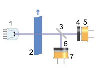 1: stripping pot, 2 : temperature probe, 3 : gas flow cell, 4 : gas pump, 5 : xenon flash lamp, 6 : spectrograph
