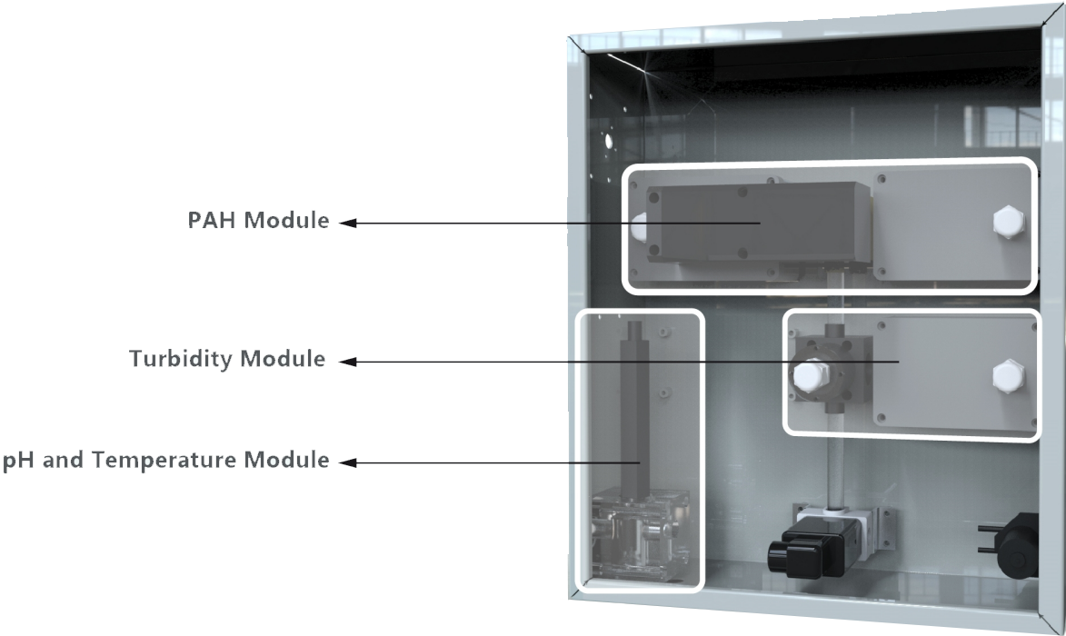- An UV-fluorescence module allows the measurement of PAH in terms of equivalent concentration of phenanthrene(PAHpheeq). Infra-red laser diode is used to monitor turbidity by nephelometry. Internal probes allow to monitor pH and temperature.