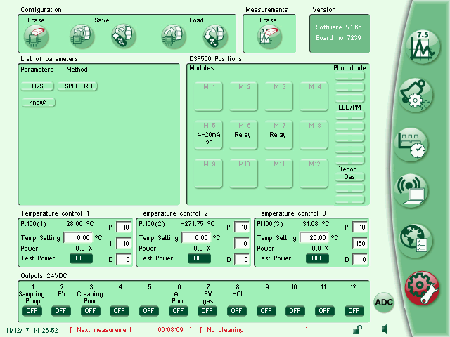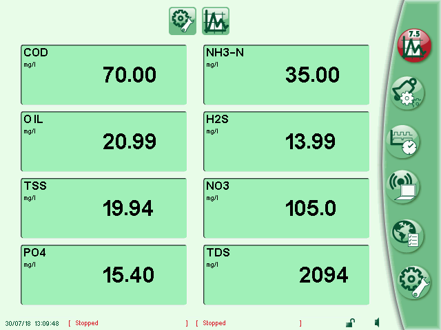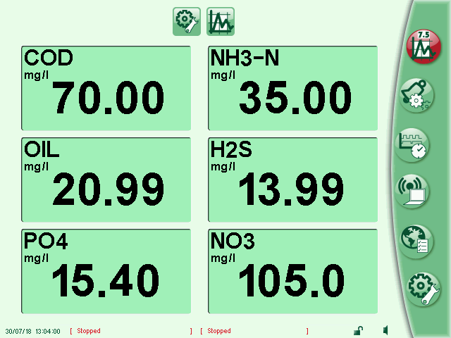 Many test functions allow to test and troubleshoot each element of the analysers (light single, pump, solenoid valves, etc…) to set up quickly a maintenance diagnostic.